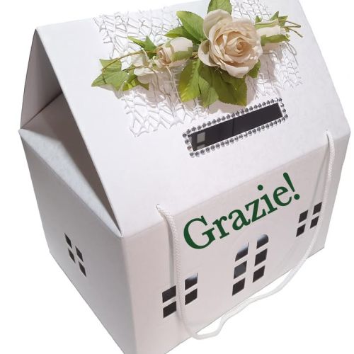 Una soluzione piรน elegante e rispettosa del galateo รจ collocare una scatola porta buste al banchetto.