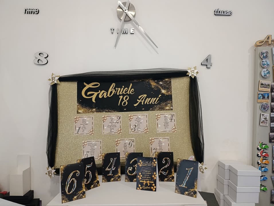 #18anniDiGabriele #OroNero #FestaDiCompleanno #BomboniereRaffinate #ConfettiMaxtris #TableauMariage #Segnatavolo #PartyDesign #EventiSpeciali #AmpliaBomboniere #IdeeFesta18Anni #Eleganza