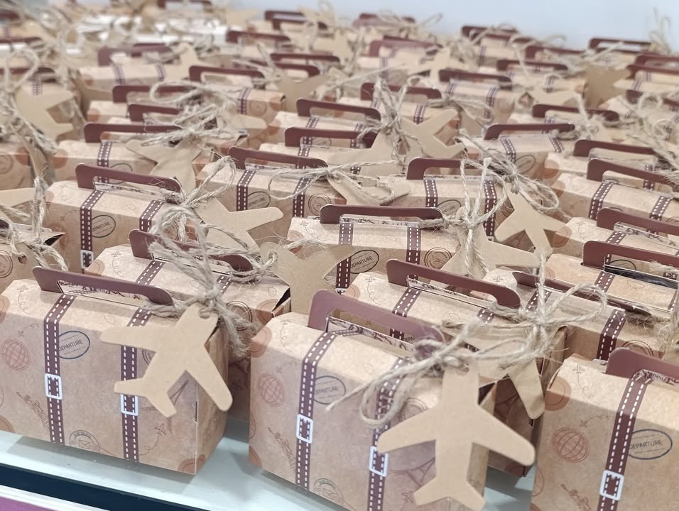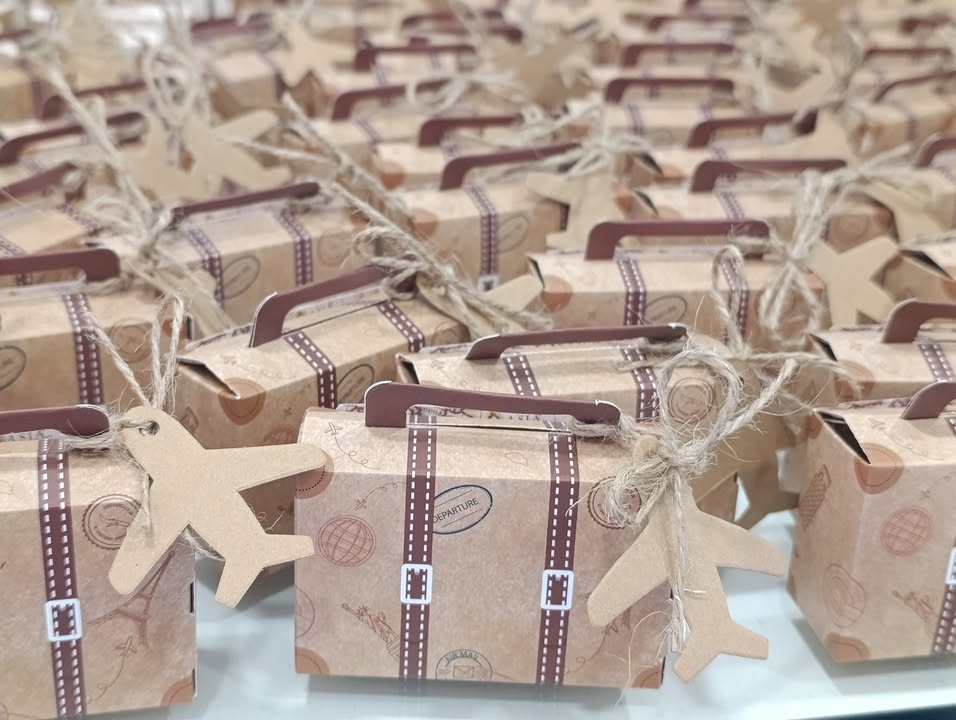 Il suo grazioso cadeau per gli ospiti riflette perfettamente questo spirito: una scatolina a forma di valigia! 🧳