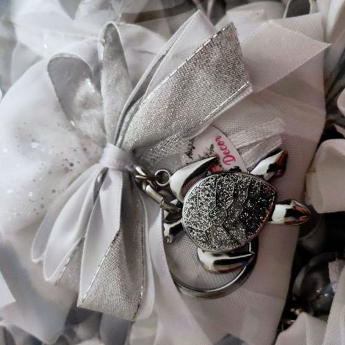 🩶𝑨 ricordo di questo giorno sicuri e decisi i🥂 novelli sposi hanno scelto i portachiavi in 5 diversi modelli in acciaio, tartaruga, gufetto, doppio cuore, albero della vita, quadrifoglio con sacchetto bianco e fiocco argento.