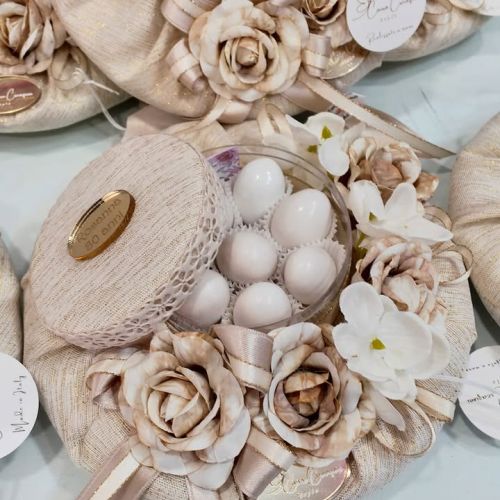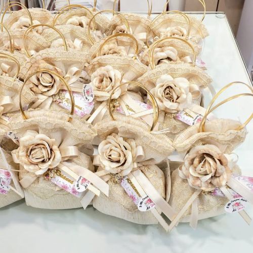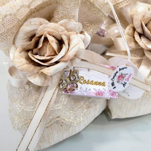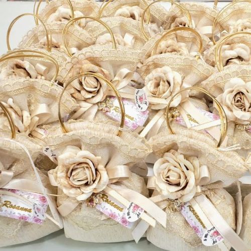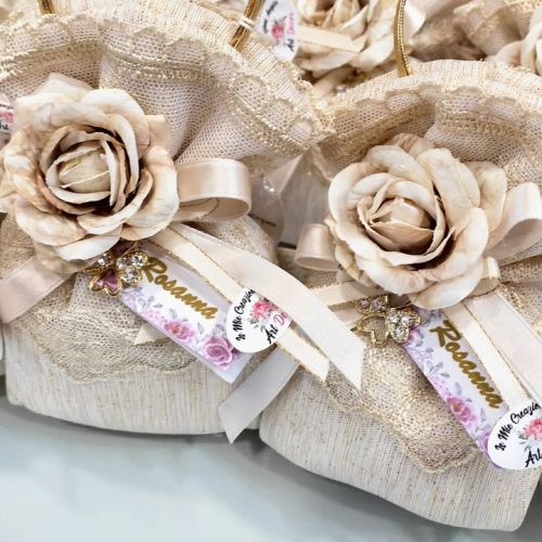 Per questa occasione unica, ha scelto un sacchetto a borsetta in pizzo e stoffa, realizzato a mano con amore e cura da Caira Creazioni Caira Creazioni. Un pezzo esclusivo che aggiunge un tocco di classe alla sua festa!