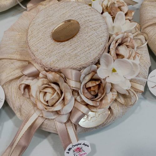 Inoltre, per un dettaglio davvero speciale, abbiamo creato un porta confetti a forma di cappello, sempre realizzato a mano da esperti artigiani, con una deliziosa confettata all’interno e una targhetta personalizzata, per rendere il tutto ancora più unico e memorabile.