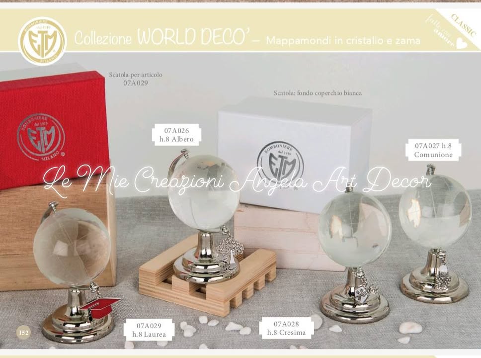 🌍 Collezione Mappamondo: Un Viaggio nei Dettagli e nel Design 🌍 ETM Bomboniere Le nuove Collezione Mappamondo, oggetti esclusivi realizzati con materiali pregiati come vetro e legno, combinati in un design innovativo che aggiungerà un tocco di eleganza e originalità a qualsiasi ambiente della tua casa.