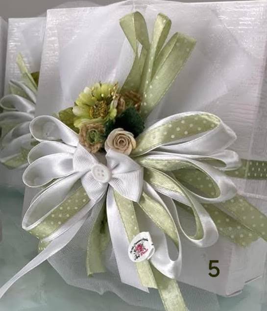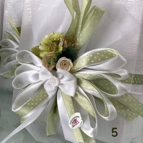 E se il fiocco è bicolore, allora si trasforma in una piccola opera d’arte: non tutti sanno realizzarlo con equilibrio e precisione, ma regala un tocco unico e prezioso, rendendo ogni bomboniera davvero indimenticabile.