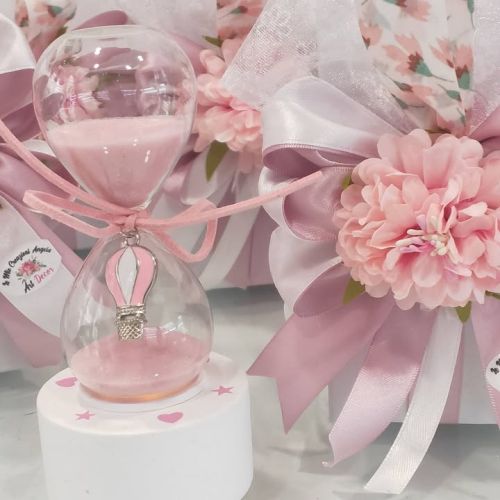 L’elegante clessidra della linea quadrifoglio ETM Bomboniere con ciondolo mongolfiera, simbolo del tempo che scorre e della vita che si rinnova, accompagna questo importante sacramento. ️