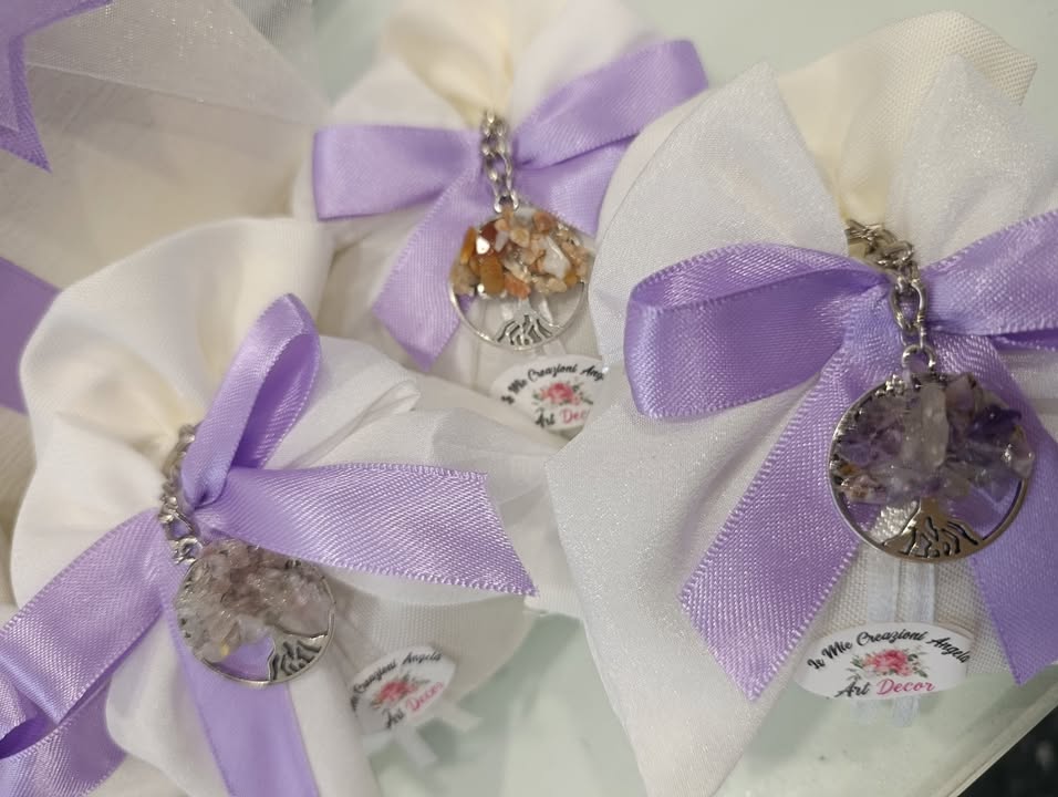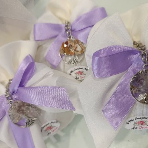 Sacchettini con portachiavi albero della vita con pietre di fiume artigianale