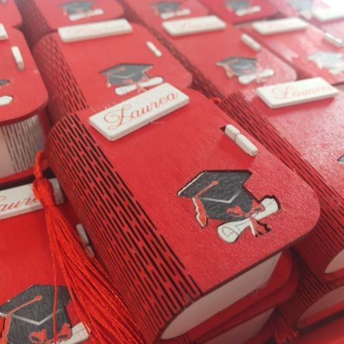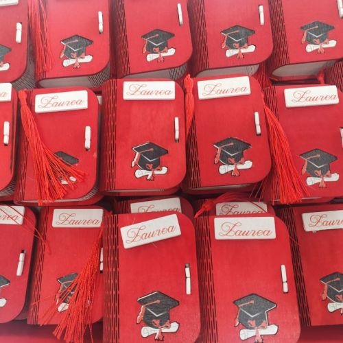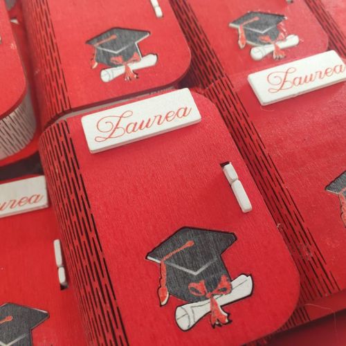 👨‍🎓Per la sua Laurea un giorno importante e speciale, una graziosa scatolina della linea Etm Bomboniere in legno con scritte e decori.