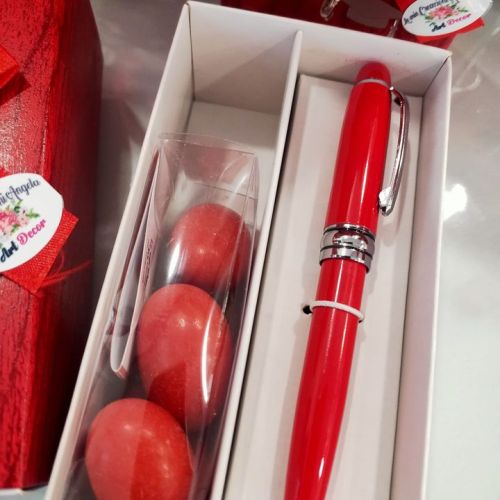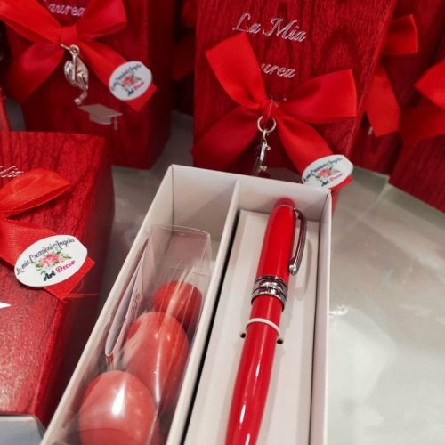 👩‍🎓Penna BOX LAUREA CON PENNA e ciondolo Tocco, con scatolina plastica porta🎓 confetti naturalmente di colore rosso.🎓