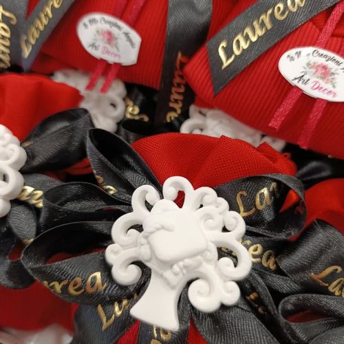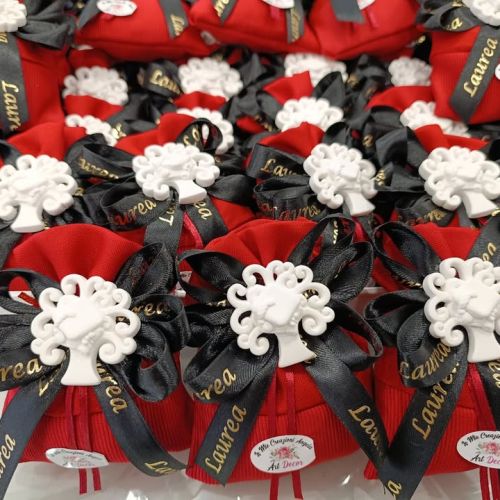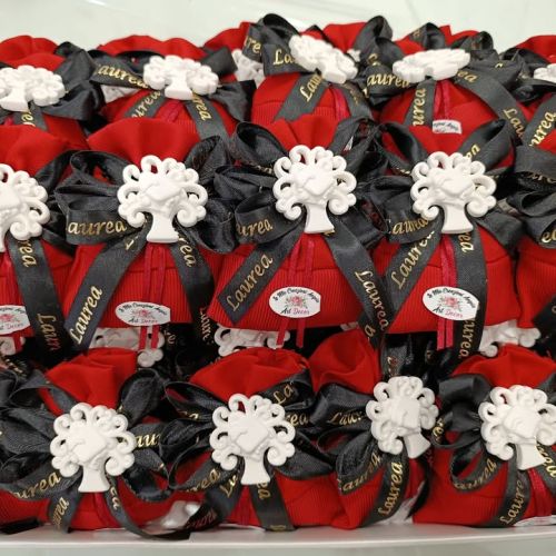 Per questa occasione speciale, ho creato per lei un invito unico per la sua festa e una bomboniera che riflette la sua grande realizzazione: un sacchetto in cotone rosso con fiocco nero laurea e un gessetto con il tocco centrale a forma di albero della vita π³.