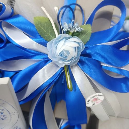 💙 Il confezionamento è stato curato nei minimi dettagli, nei colori scelti proprio da Kevin: Blue Royal e bianco, eleganti e raffinati. Ogni bomboniera è impreziosita da un fiore decorativo, e all’interno un tulle delicato racchiude i confetti, arricchito da un piccolo fiorellino che dona un tocco di dolcezza in più.