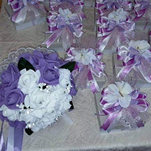 un bouquet artigianale con fiori fatti interamente a mano in gomma crepla, curati in ogni dettaglio e ispirati alle tonalità che lei ama di più… il lilla e le sue dolci sfumature.