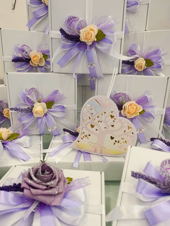 🕊️💜🌿La confezione è stata curata in ogni dettaglio: nei toni lilla, il colore preferito di Zoe, arricchita da un fiore fatto a mano e un nastro bicolore in perfetta armonia.