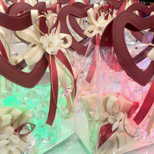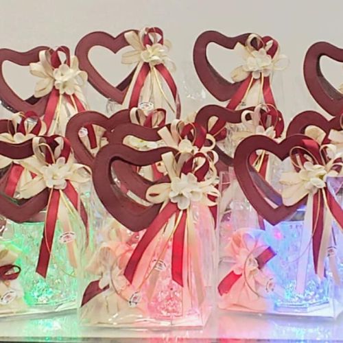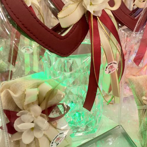 Per un giorno così speciale, mamma Claudia ha trovato subito ciò che cercava nella nostra selezione. Dopo aver valutato diverse proposte, la scelta è ricaduta sulla bellissima linea Caira Creazioni. La lampada multicolor ricaricabile con accessorio, ha illuminato la loro giornata, accompagnata da un elegante sacchetto in tessuto con confetti abbinato e una raffinata shopper trasparente con manico rosso bordeaux a forma di cuore ❤️.
