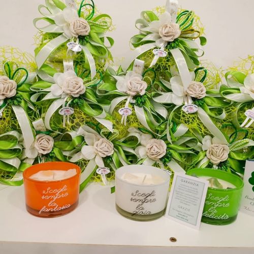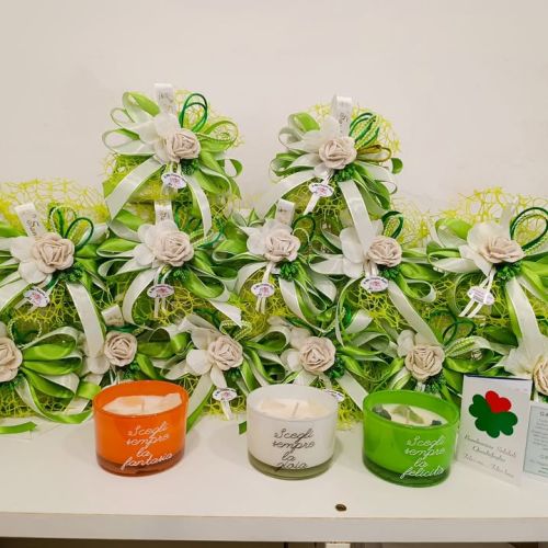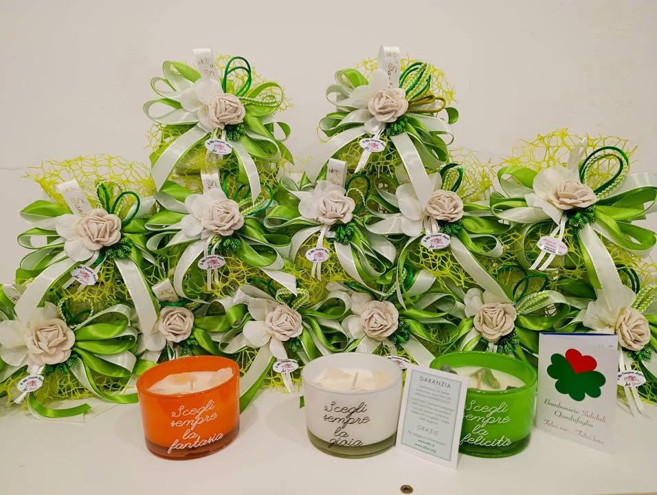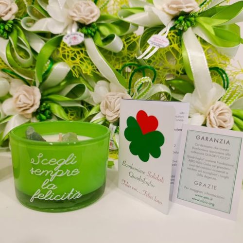 Per il suo giorno speciale, Luca ha scelto con decisione una bomboniera che parla di luce, speranza e solidarietà: le eleganti candele della linea “Quadrifoglio Solidale” di ETM Bomboniere