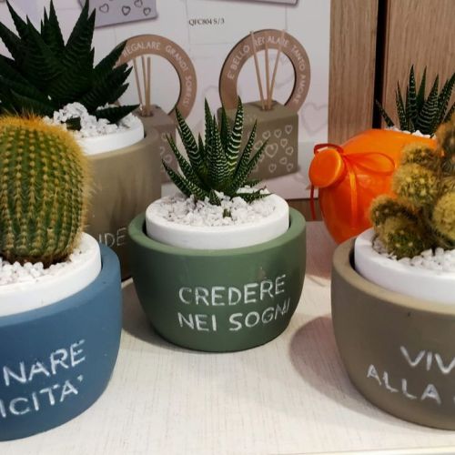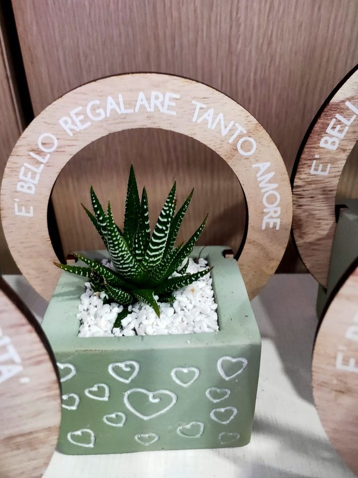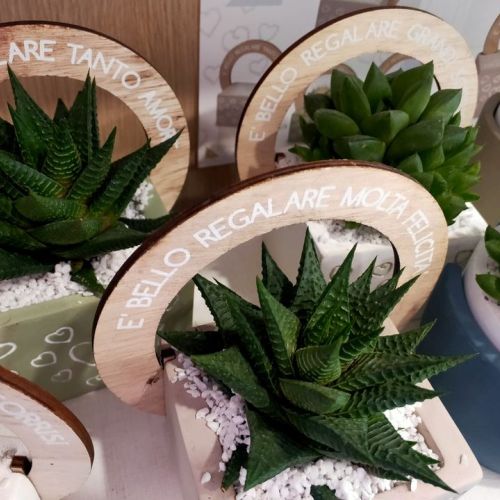 ottimo compromesso tra bomboniera e beneficienza, parte del ricavato sarà devoluto alla fondazione ABIO (ass.italiana per il bambino in ospedale), complete di certificato di donazione (il porta piantina con pianta grassa vera non è compreso di scatola)