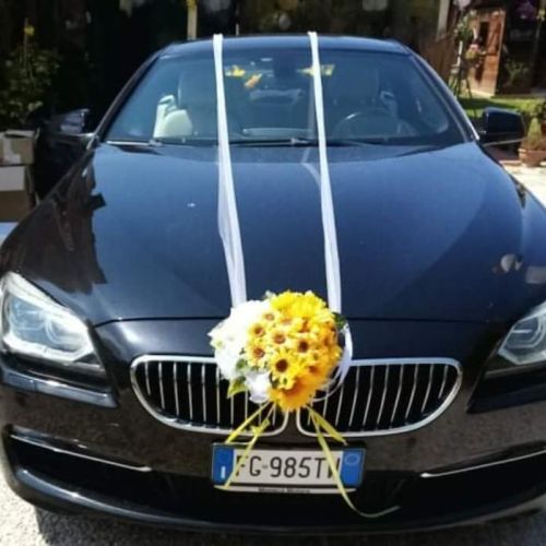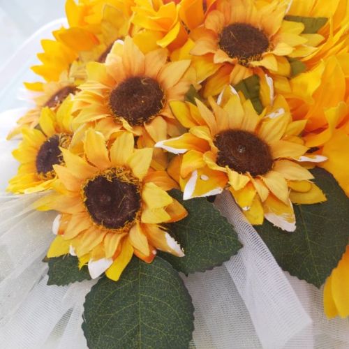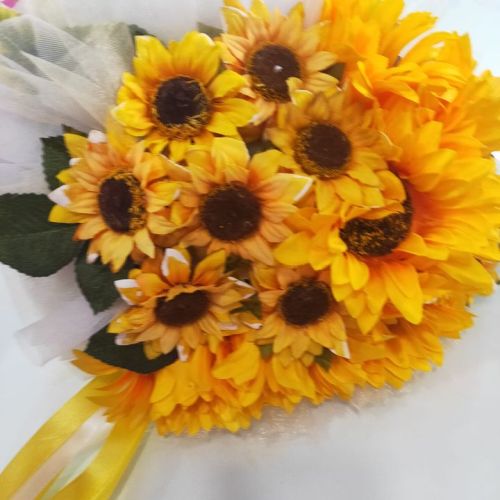 🌻Per la loro macchina ho confezionato un cuore di girasoli artificiali con base in vimini tulle e organza.