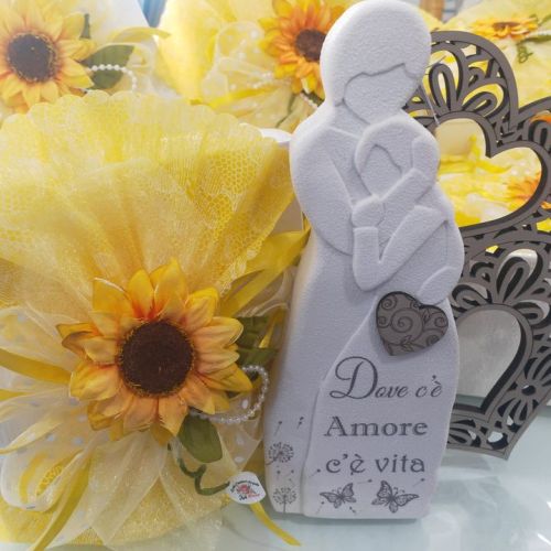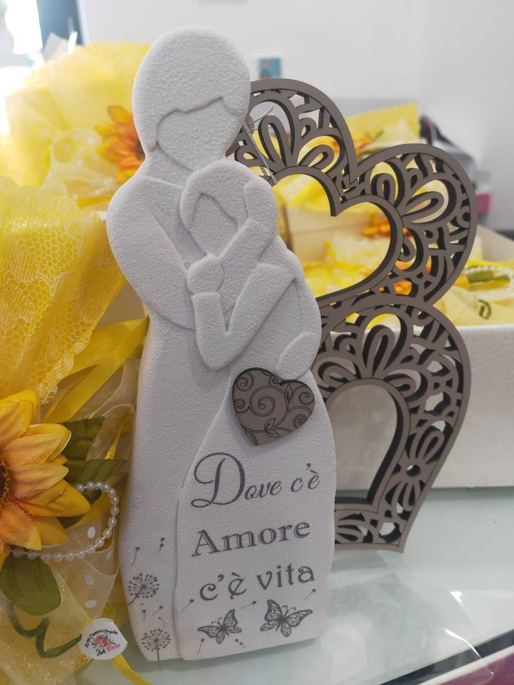 🥂La scultura Dorothy di Dolcicose raffigurante la coppia è realizzata in polvere di marmo e doppio cuore in legno traforato con aforisma, completa di scatola originale e di certificato di autenticità Dolcicose.