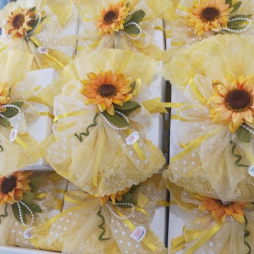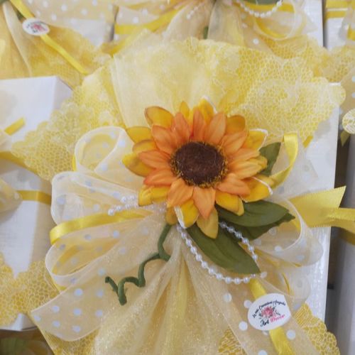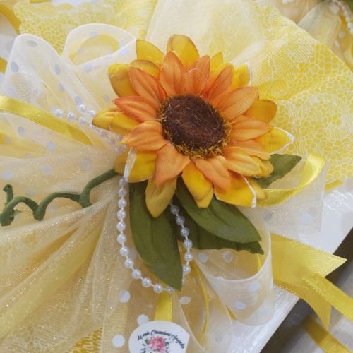 🥂La sposa ama i girasoli🌻 quindi secondo i suoi desideri ho creato la confezione nei toni del giallo e bianco con girasoli.