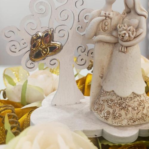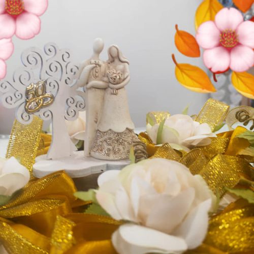 πBomboniera coppia sposi con albero della vita e placca in laminato argentoπ₯