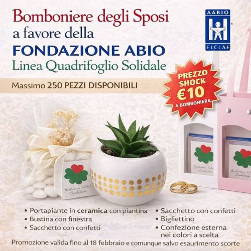 ๐ **Nuova Collezione Bomboniera Solidale 2026** โฃ๏ธ โจ *Regala unโemozione che lascia il segno* โจ Sono felice di presentarvi una nuova e meravigliosa opportunitร per trasformare il vostro evento in un **gesto dโamore** ๐ Anche per il **2026**, il mio negozio sostiene con orgoglio la **Linea Quadrifoglio Solidale di ETM Bomboniere **, a favore della ๐ **Fondazione ABIO Italia**….
