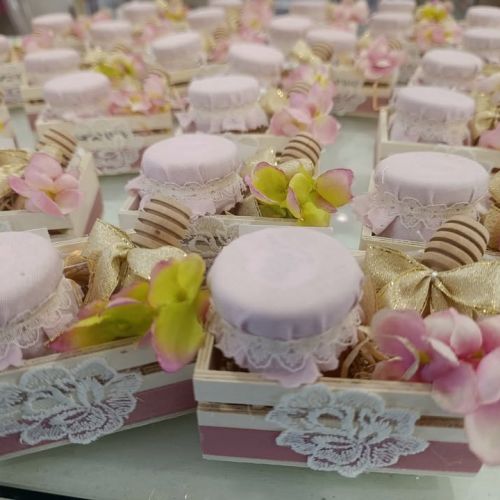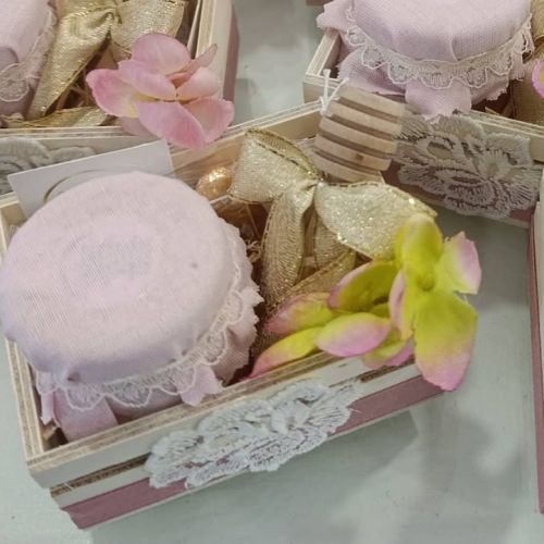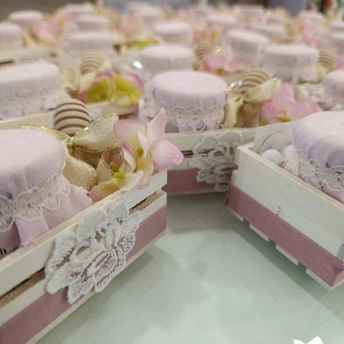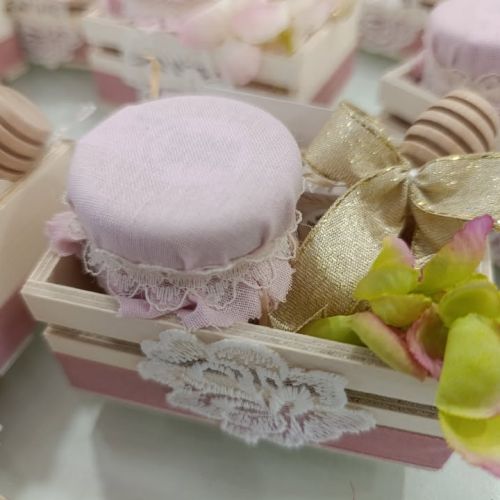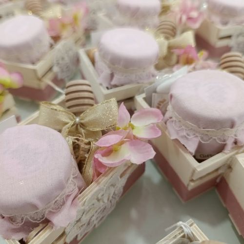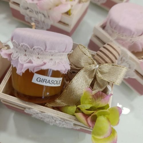 Bruno e Dea cercavano qualcosa di unico per celebrare questo traguardo straordinario e, dopo aver valutato tante opzioni, alla fine hanno scelto una scatolina in legno decorata con stoffa e pizzo, contenente un delizioso vasetto di miele e il cucchiaio per miele di Caira Creazioni . 🍯✨