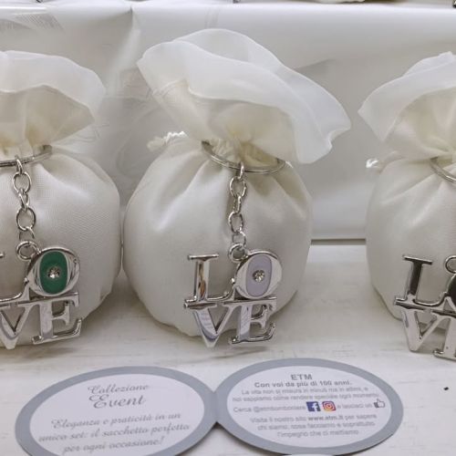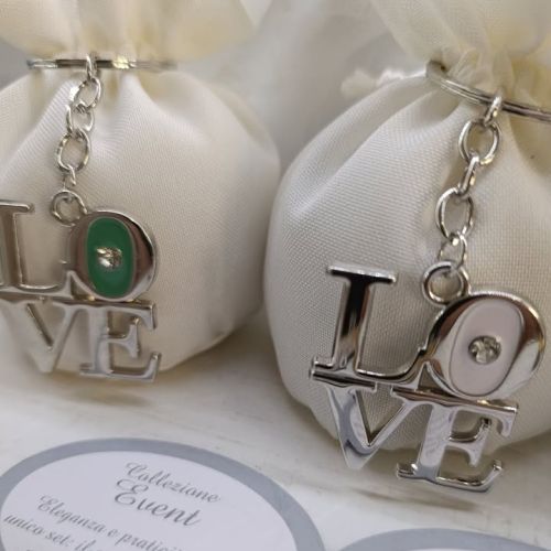 La nuova collezione, perfetta per chi vuole regalare qualcosa di utile e al contempo elegante. La Collezione Event è composta da un sacchetto elegante bianco, e puoi scegliere tra un raffinato portachiavi o una penna esclusiva. Entrambe le opzioni sono impreziosite da un ciondolo in acciaio con la scritta LOVE, disponibile in tre colori: verde, bianco e blu avion, con la lettera “O” smaltata in tinta.