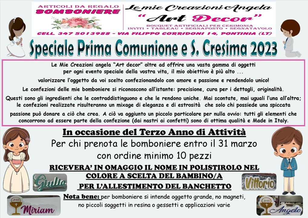 PRENOTAZIONI APERTE… PRIMA COMUNIONE e SANTA CRESIMA 2023 VIA FILIPPO CORRIDONI, 14 PONTINIA (LT) #bombonierecresima #bombonierecomunione #bomboniere #bomboniere2023 #cerimonia #bombonierautile #
