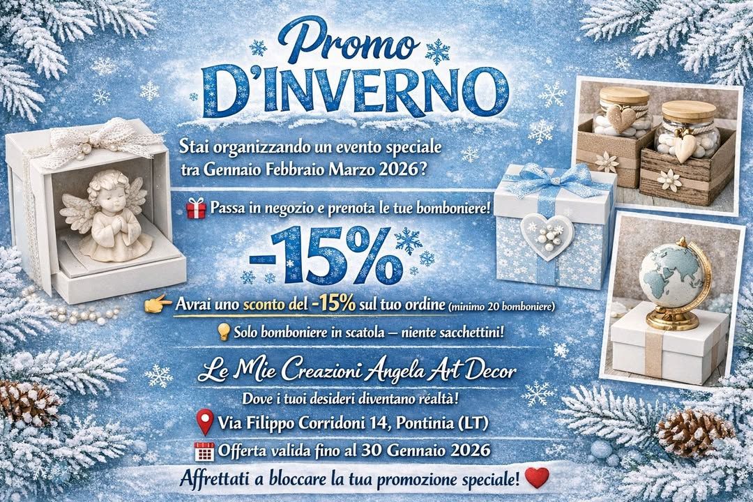 #promodinverno #bomboniere #eventi2026 #lemiecreazioni #angelartdecor #pontinia #wedding #battesimo #comunione #cresima