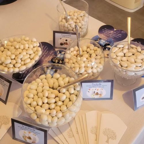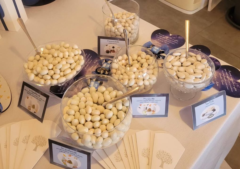 Il ricevimento è stato addolcito da una ricchissima Confettata con cinque gusti differenti, servita con eleganti coni per ogni invitato.