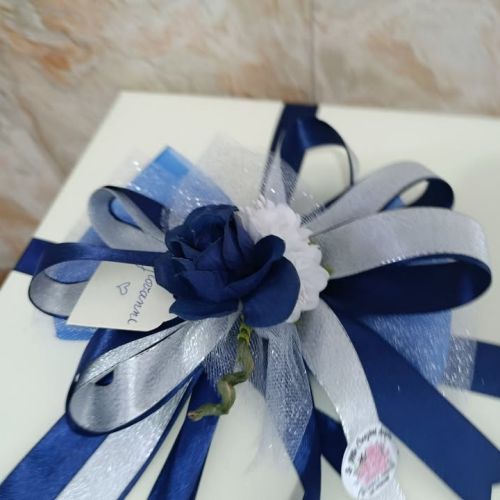 Il tema del confezionamento ha richiamato l’eleganza del blu della notte e il mistero affascinante della costellazione. La lampada è stata racchiusa nella sua scatola, all’interno della quale ho inserito il sacchetto con i confetti naturalmente Maxtris, giocando con i colori raffinati del blu e dell’argento per un effetto chic e profondo.