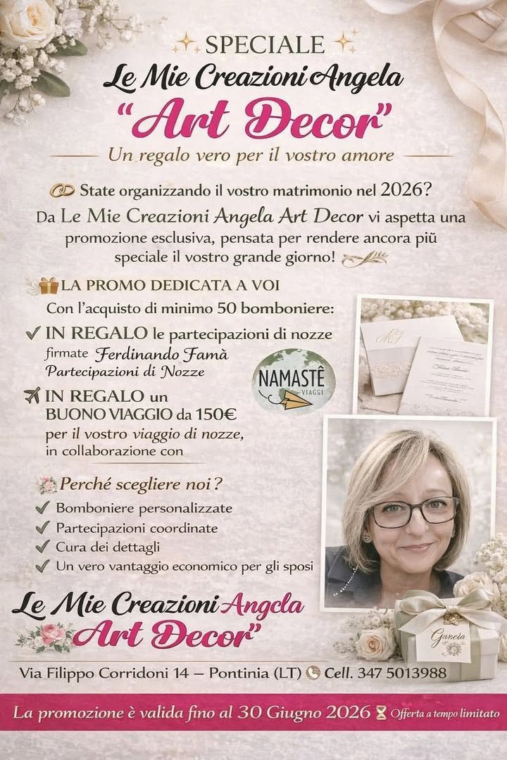 #LeMieCreazioniAngelaArtDecor #Pontinia #cerimonia #offerte #SposiPontinia #MatrimonioLatina #SposiLatina #Sabaudia #Terracina #LatinaEventi #NamastèViaggi #FerdinandoFamà