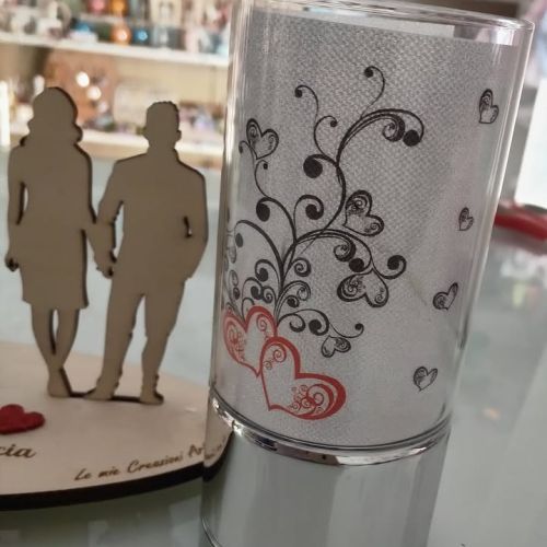 Un articolo in legno personalizzato con dedica speciale, abbinato a una splendida lampada in vetro Bagutta. 🪵✨